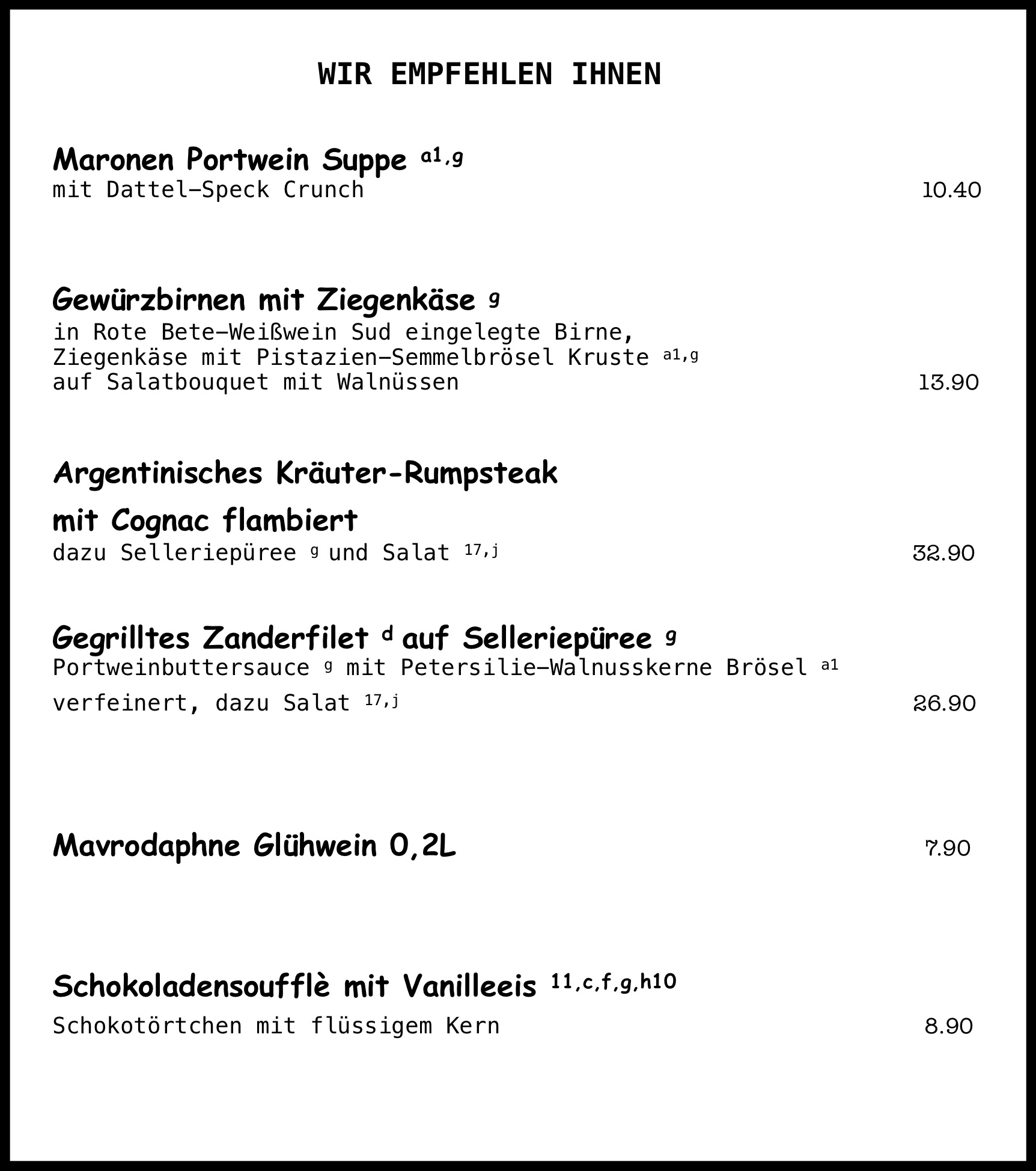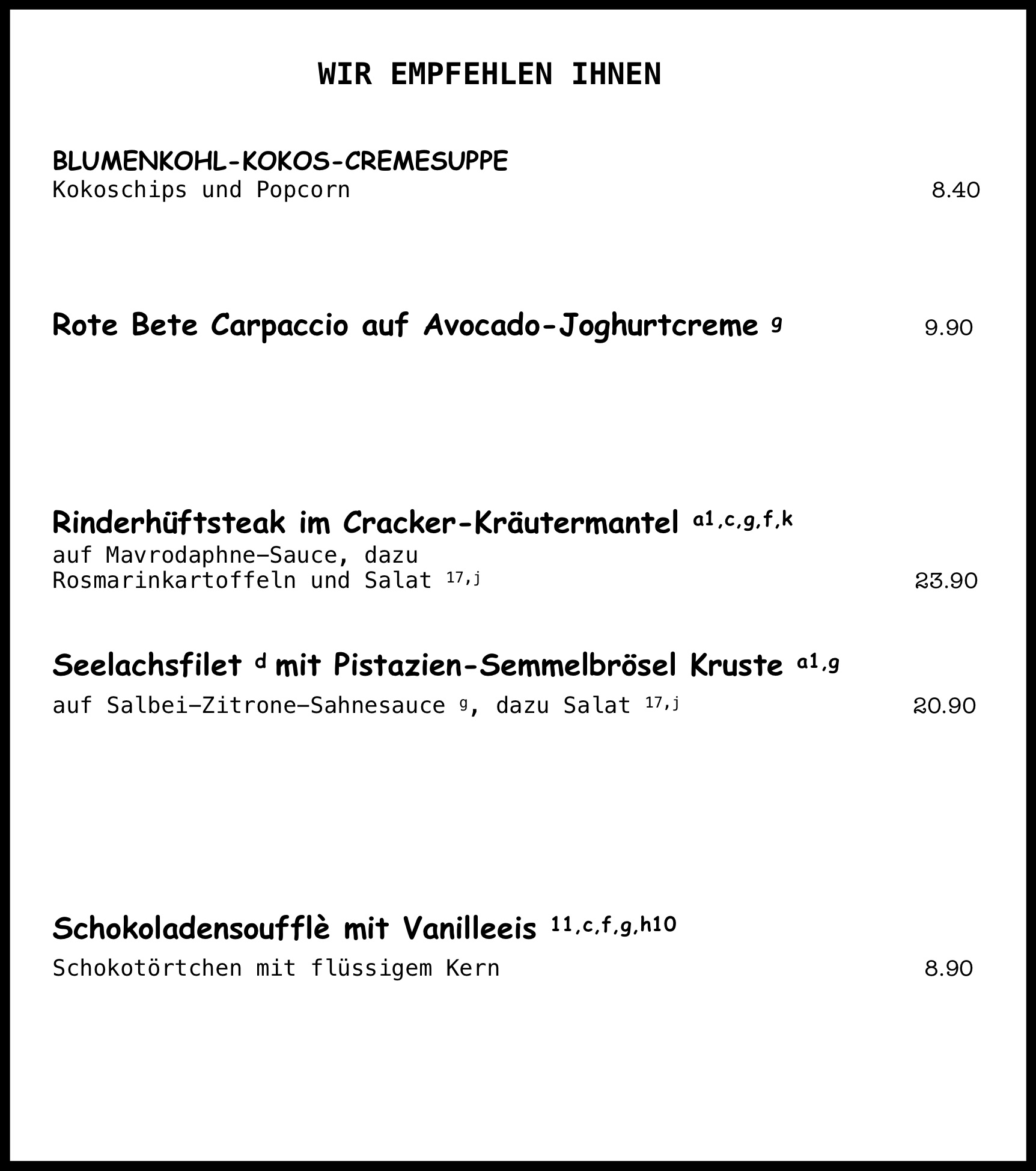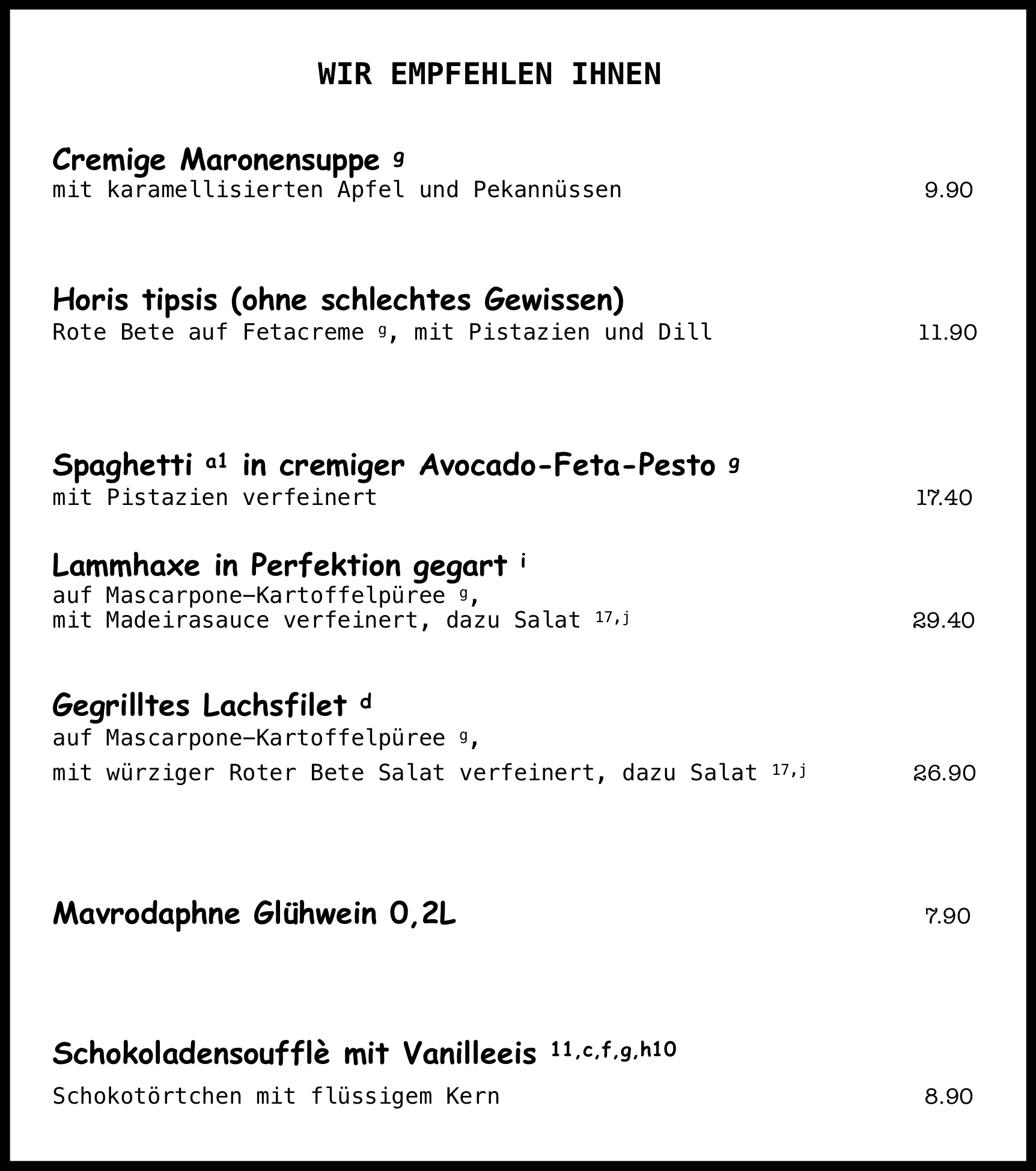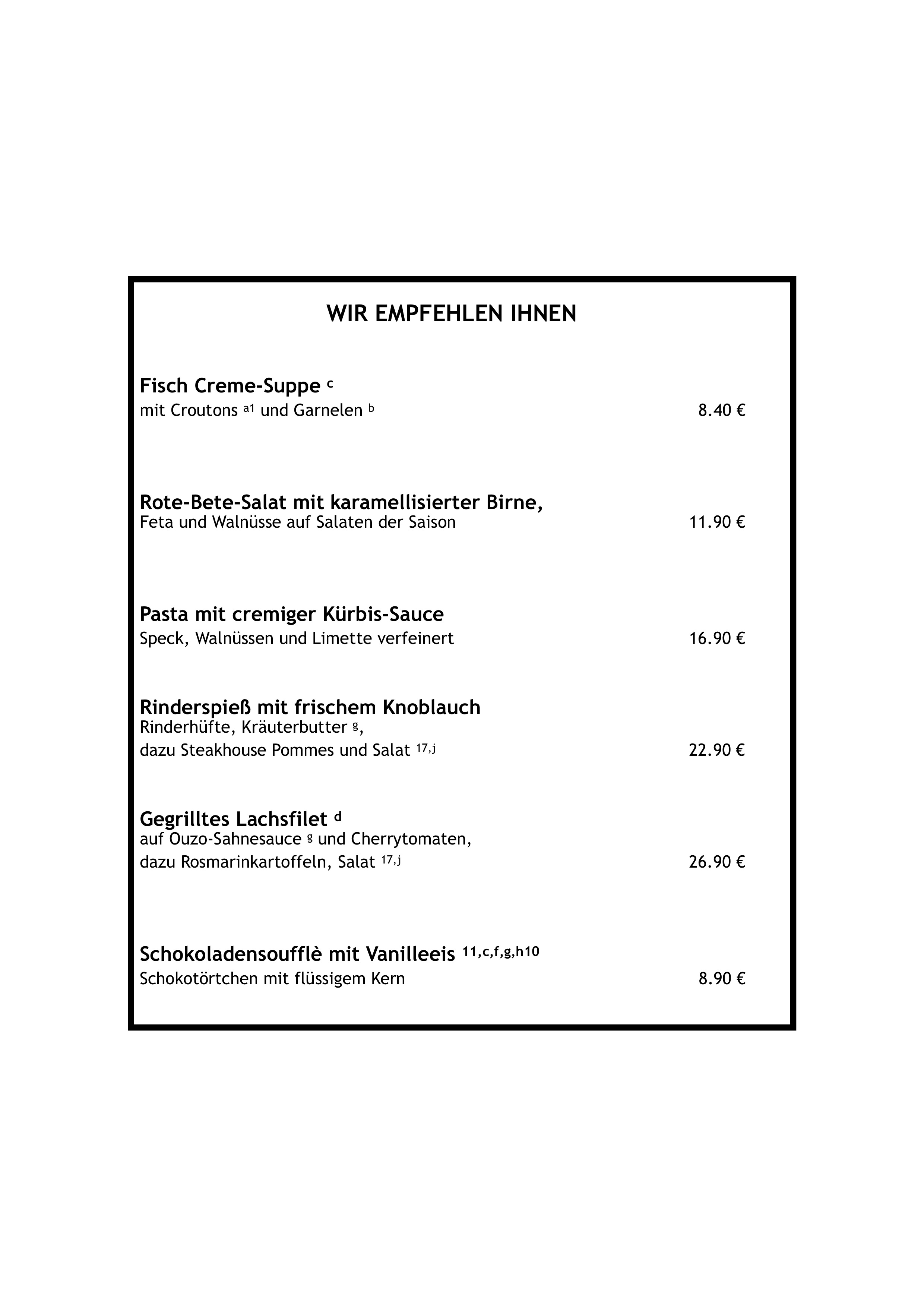 Speisekarte